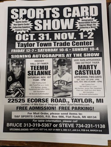 We will be at the Taylor Sports Card Show at Taylor Town Trade Center February 2-4, 2024 in Taylor, MI.